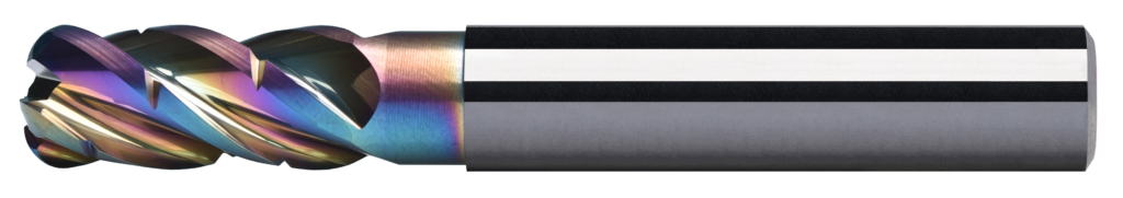 • Solid carbide end mills (flat, ball nose, corner radius)